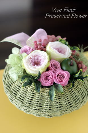 | 商品説明 | モスグリーンのバスケットに、外側はライムグリーン、中心はほんのりピンクがやわらかに広がった気品あるオールドローズとキュートなミニローズと共にアレンジしました。 バスケットにはリンゴや実ものなどを一緒につめて、小さなお花畑のような優しさ溢れるアレンジメントです♪ 新築のお祝いなどギフトにも最適です。 |