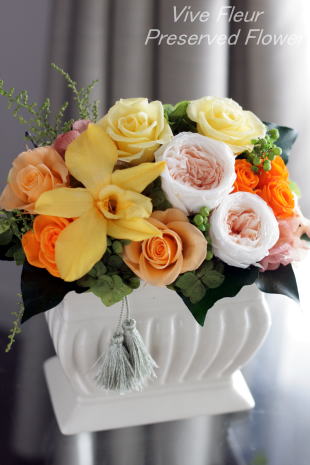 *リンゴ以外、グリーン類も含め全て生花をプリザーブ(保存)加工されたものを使用しております