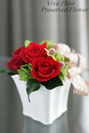 *ヒペリカム以外、グリーン類も含め全て生花をプリザーブ(保存)加工されたものを使用しております
