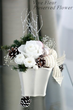 *松笠以外グリーン類も含め全て生花をプリザーブ(保存)加工されたものを使用しております