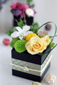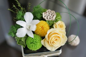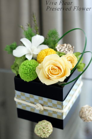 *ハス以外、グリーン類も含め全て生花をプリザーブド(保存)加工されたものを使用しております