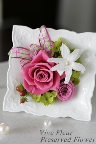 *ヒペリカム以外、グリーン類も含め全て生花をプリザーブド(保存)加工されたものを使用しております