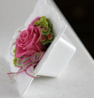 ローズ、チューベローズ、アジサイ、ヒペリカム(フェイク)、リボン