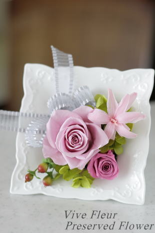 *ヒペリカム以外、グリーン類も含め全て生花をプリザーブド(保存)加工されたものを使用しております