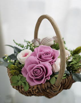 ローズ、ポアプランツ、リンフラワー、グラッピア、ストーベ、アジサイ、アイビー、リボン