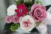 ローズ、オールドローズ、ジニア、ペッパーベリー、サリグナムウ、ペティーコート、アイビー、リボン