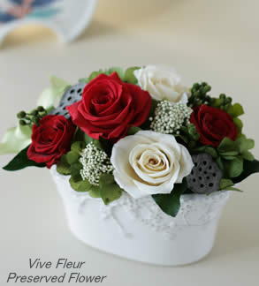 *ハス以外、グリーン類も含め全て生花をプリザーブ(保存)加工されたものを使用しております。