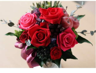 *リンゴ以外、グリーン類も含め全て生花をプリザーブ(保存)加工されたものを使用しております。